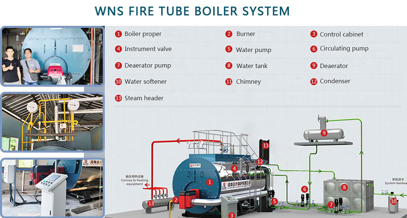 WNS gas/oil boiler adopts horizontal fire tube structure, which can provide larger steam/water output. Three pass wet-back design, larger corugated furmace, thread smoke tube with unique expansion welding technique, high quality and environmental protection.