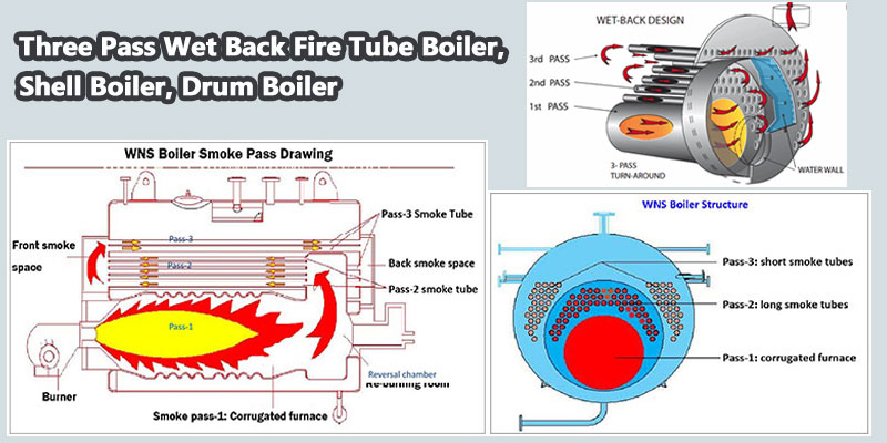 Fire tube boiler is an 3-pass industrial boiler composed of multiple groups smoke tubes, drum, front and rear tube plates, corrugated furnace, and reversal chamber etc. It can be equipped with fueloil/gas burner or biomass burner. Also called shell boilers or drum boilers, used to generate steam or hot water for production process.