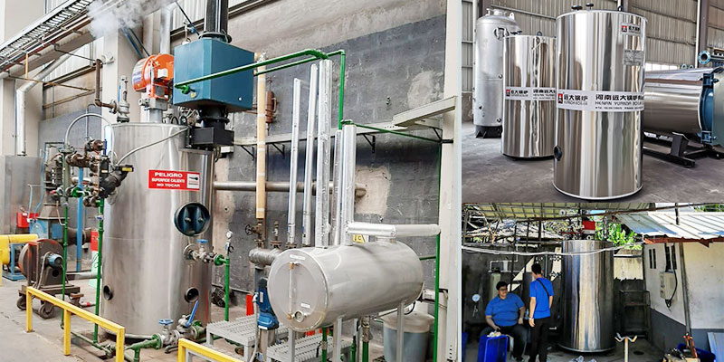 It adopts vertical fire tube structure, small in size, space-saving, occupies less footprint; no need to build boiler room, reduce cost and high flexibility; Simple structure, fast start and stop; lower thermal efficiency than horizontal boiler.