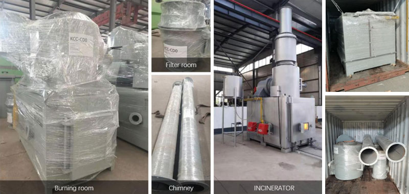 1. Pre-assembled modular design: The main combustion chamber, secondary combustion chamber, flue gas purification system, and electrical control panel are pre-assembled at the factory.
